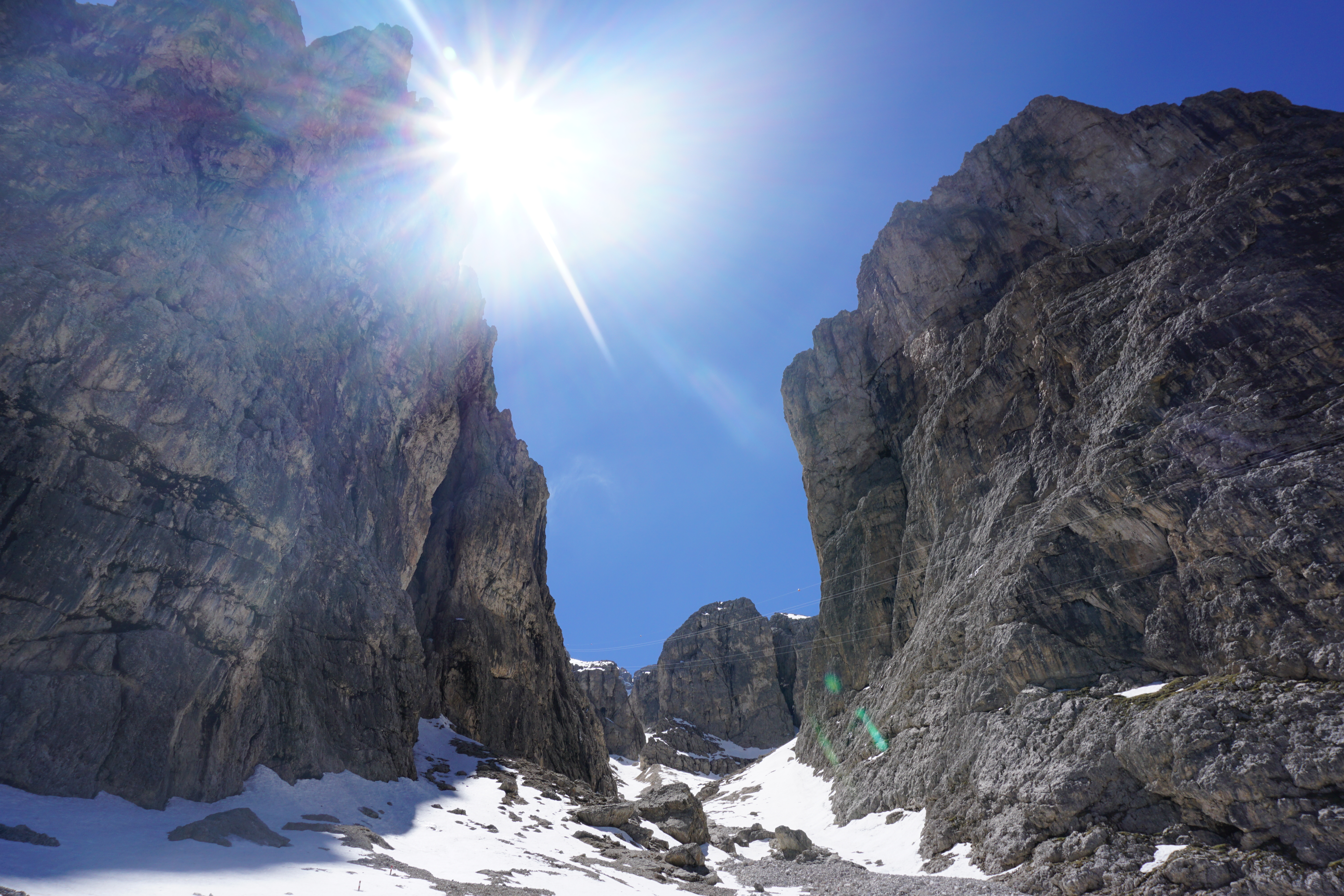 After forging through the snow (which you will be able to watch in my upcoming video), I finally reached the summit. I didn’t really account for snow, so by this time I was pretty wet. If you plan on hiking the Dolomites in summer, remember that there may still be snow at the top. Also note that the families that run the Bed & Breakfasts aren’t too happy when you have to dry just a few pieces of clothing. 🙁